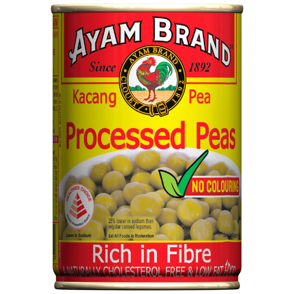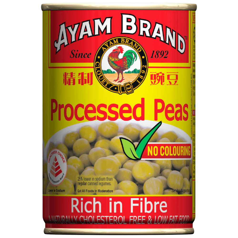 Ayam Brand™ Procesesed Peas, cholesterol free and rich in fibre, is accredited with the Healthier Choice Logo by Health Promotion Board.